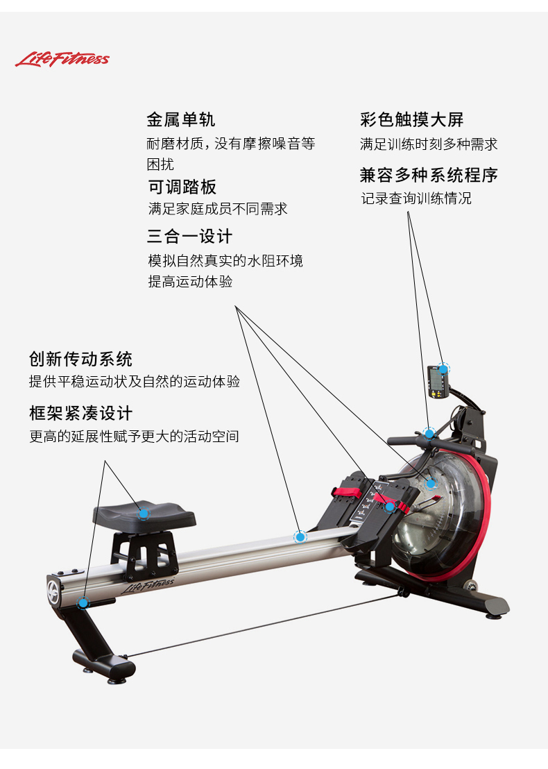 力健旗艦店LifeFitness水阻劃船機(jī)金屬單軌健身器材可折疊GX
