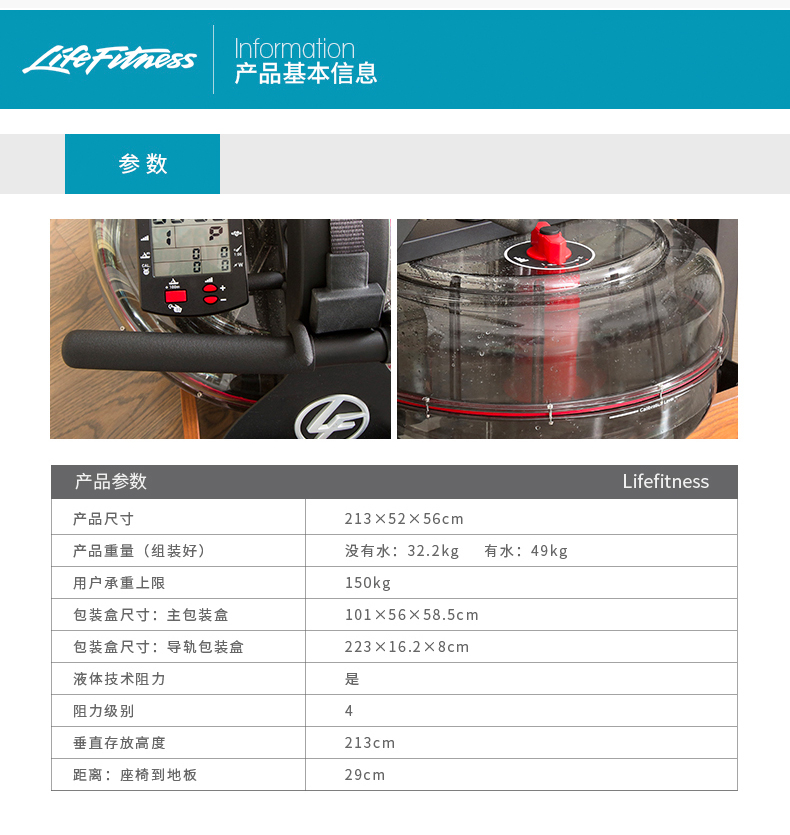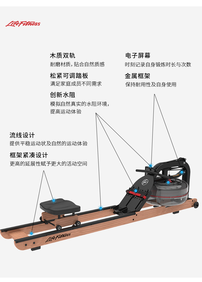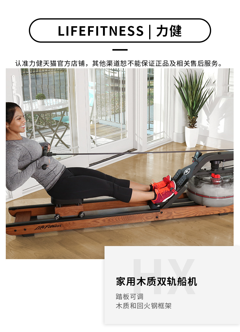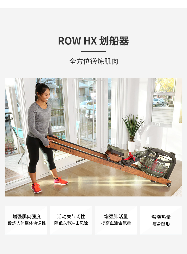 LifeFitness/力健進(jìn)口水阻劃船機(jī)木質(zhì)雙軌室內(nèi)健身器材家用HX