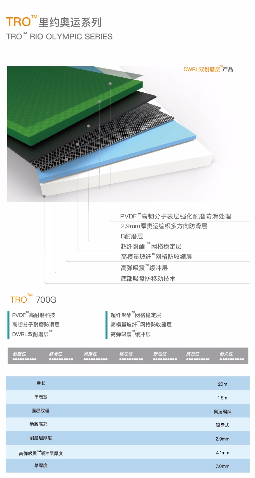 天速Tinsue乒乓球PVC運動地膠奧運系列TRO-700G