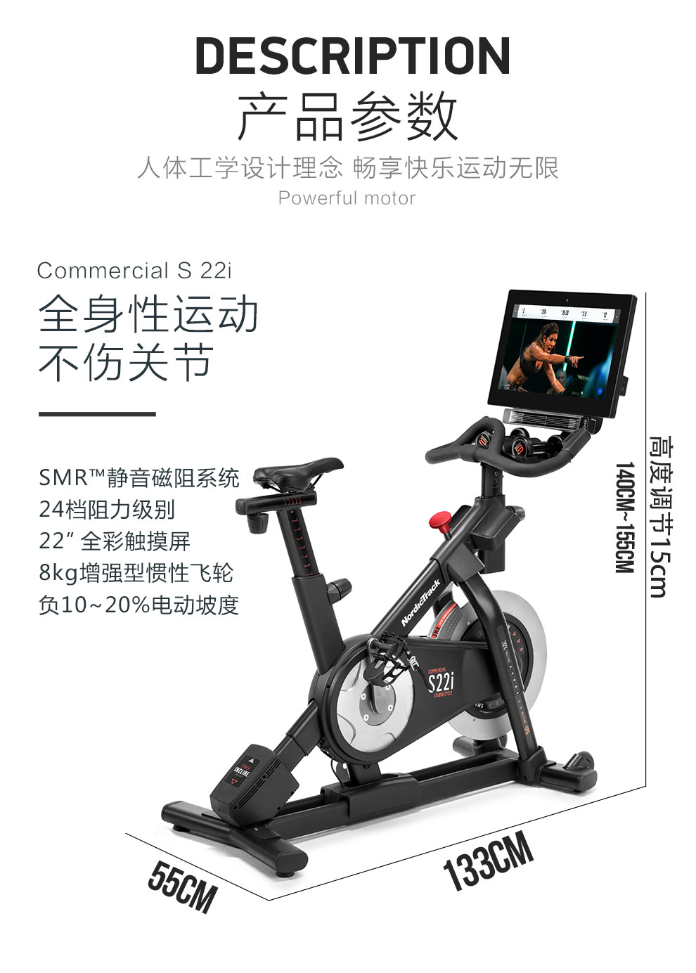 健身車S22i/18718商用靜音磁控阻力大彩屏實景私教健身器材